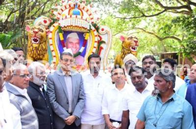 Photo Caption : BBMP Commissioner Tushar Girinath and BBMP officials and staff during the birth anniversary program of IPD Salappa at BBMP office, in Bengaluru on Thursday 9th January 2025