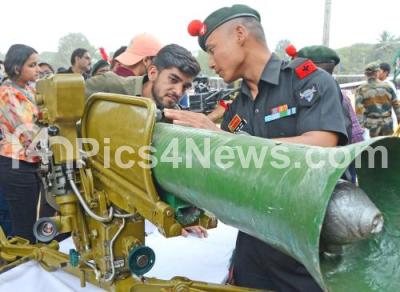 Display of combat equipment including tanks and drones at the Field Marshal Manekshaw Parade Ground, during the Know Your Army Mela 2025, organized by the Indian Army to commemorate the 77th Army Day, in Bengaluru on Saturday 11th January 2025