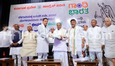 Photo Caption : AICC General Secretary Randeep Singh Surjewala with KPCC President and DCM DK Shivakumar, Chief Minister of Karnataka Siddaramaiah, Ministers, MLAs and Congress leaders during the preliminary preparation meeting at Bharat Jodo Bhavan on "Jai Bapu, Jai Bhim, Jai Samvidhan" convention to be held on January 21 in Belagavi as part of the Gandhi Bharat program, in Bengaluru on Monday 13th January 2025