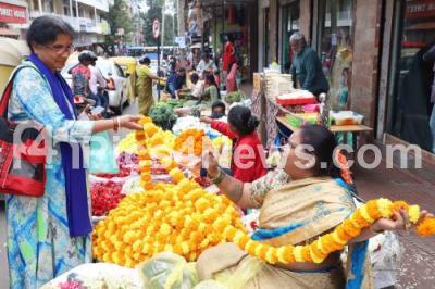 Photo Caption : People shopping flowers for the Sankranti festival, at Malleshwaram, in Bengaluru on Monday 13th January 2025