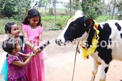 Event Description : Children performing Go pooja ( cow worship) on the occasion of Makar Sankranti festival at a Thagachaguppe village, in Bengaluru on Tuesday 14th January 2025