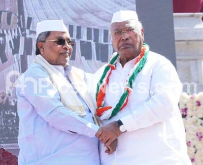 Photo Caption : AICC President Mallikarjuna Kharge and Chief Minister of Karnataka Siddaramaiah during the unveiling of Mahatma Gandhi statue in front of Suvarna Vidhana Soudha, in Belagavi on Tuesday 21st January 2025