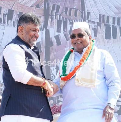 Photo Caption : Chief Minister of Karnataka Siddaramaiah and DCM DK Shivakumar during the unveiling of Mahatma Gandhi statue in front of Suvarna Vidhana Soudha, in Belagavi on Tuesday 21st January 2025