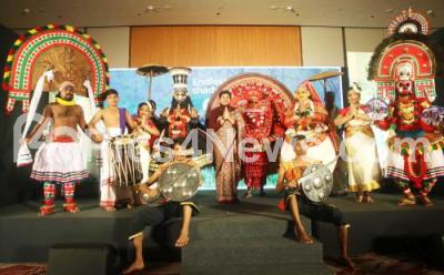 Photo Caption : Sikha Surendran, Director, Department of Tourism, Government of Kerala with Kerala folk artists during the "Kerala Tourism Partnership Meet" at a private hotel , in Bengaluru on Thursday 23rd January 2025