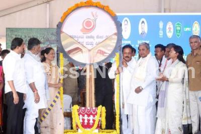 Photo Caption : Chief Minister of Karnataka Siddaramaiah inaugurated the "International Trade Fair Organic and Millets 2025" at Palace Grounds, also seen are Union Minister Shobha Karandlaje, Jharkhand State Agriculture Minister Shilpi Neha Tirkey, DCM DK Shivakumar, Ministers Cheluvaraya Swamy, Byrathi Suresh, Krishna Byre Gowda and others, in Bengaluru on Thursday 23rd January 2025