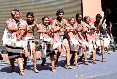 Photo Caption : Artists from the other states performing cultural dance during the inauguration of "Kala Dhwani" to celebrate the best of India folk and tribal culture at Chitrakala Parishat, in Bengaluru on Friday 24th January 2025