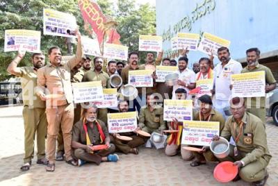 Photo Caption : Members of Indian Vehicle Drivers Trade Union protesting and demanding action against companies like Uber, bike taxis and cabs, porters, at Freedom Park, in Bengaluru on Saturday 25th January 2025