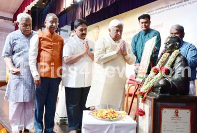Photo Caption : Minister HK Patil with Nadoja Dr. Woodey P Krishna, President, Karnataka Gandhi Smaraka Trust, HN Suresh, Director, BVB, NR Ravikumar and others offering floral tribute to Mahatma Gandhi during the 75th Anniversary of Karnataka Gandhi Smaraka Nidhi and Sarvodaya Day at Gandhi Bhavan, in Bengaluru on Thursday 30th January 2025