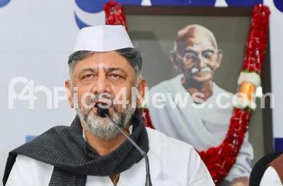 Photo Caption : KPCC President and DCM DK Shivakumar addressing the KPCC members and workers during the Martyrs Day, to mark the death anniversary of Mahatma Gandhi and to honour his contribution towards the freedom of the country, at KPCC office, in Bengaluru on Thursday 30th January 2025