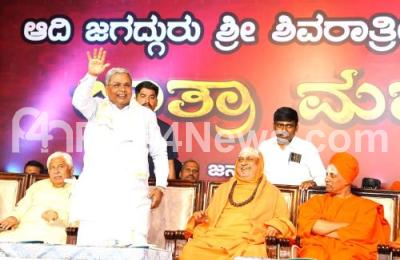 Photo Caption : Chief Minister of Karnataka Siddaramaiah during the Jatra Mahotsava of Aadi Jagadguru Sri Shivaratreeshwara Shivayogi at Suttur Mutt, also seen are Shivratri Desi Kendra Swamiji, Sri Siddalinga Swamiji of Siddaganga Mutt and others, in Mysuru on Friday 31st January 2025