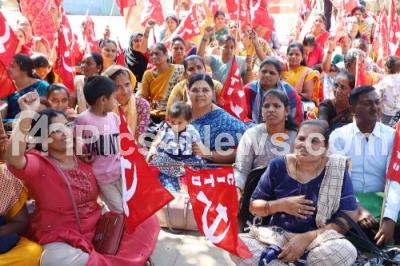 Photo Caption : Members of Centre of Indian Trade Union (CITU) protesting and condemning 2025 2026 Union government budget at Freedom Park, in Bengaluru on Wednesday 5th February 2025