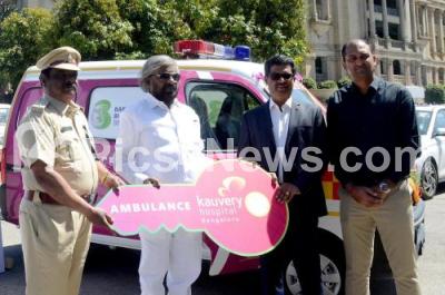 Photo Caption : Kaveri Group of Hospital donated Ambulance to Bannerghatta National Park Key being received by Forest Minister Eshwar Khandre, the Ambulance which assists with emergency medical services for visitors to the park and staff working there, in Bengaluru on Thursday 6th February 2025