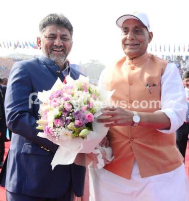 Rajnath Singh, Minister of Defence of India with DCM DK Shivakumar during the inauguration of the Aero India 2025 at Yelahanka Air Force Station, in Bengaluru on Monday 10th February 2025