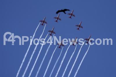 Indian Air Force aerobatic team Suryakiran perform during the Aero India 2025 at Yelahanka Air Force Station, in Bengaluru on Tuesday 11th February 2025
