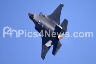 Photo Caption : US Air Force fighter jet F 35 performs maneuvers during the Aero India 2025 at Yelahanka Air Force Station, in Bengaluru on Tuesday 11th February 2025