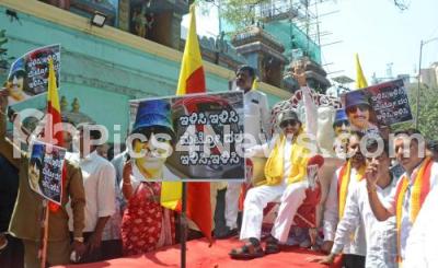 Event Description : Members of Kannada Chaluvali Vattal Paksha led by its President Vattal Nagraj protest against the price hike in Namma Metro, in Bengaluru on Thursday 20th February 2025