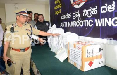 Event Description : Police Commissioner B Dayananda inspects during the press conference on property parade
