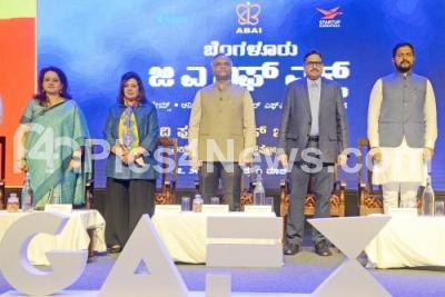 Minister for Rural Development ,Panchyat Raj and IT and BT Priyank Kharge with Founder of Biocon Kiran mazumdar Shaw, MLA Sharath Bache Gowda, Dr Ekroop Caur IAS Dept of Electronics during the inauguration of Bengaluru GAFX at Lalith Ashok, in Bengaluru on Thursday 27th February 2025