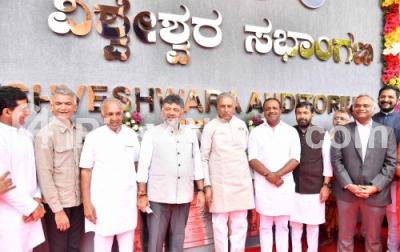 Photo Caption : DCM DK Shivakumar with Assembly Speaker UT Khader, Legislative Council Chairman Basavaraj Horatti, Ministers Boseraju, Krishna Byre Gowda, Priyank Kharge, Dr. M C Sudhakar, Former ISRO Chairman Kiran Kumar, MLA Rizwan Arshad, MLC Saleem Ahmed and others during the inauguration of the newly constructed Prof. UR Rao Bhavan at the Nehru Planetarium, in Bengaluru on Friday 28th February 2025