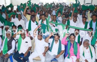 Photo Caption : Farmer leaders and members staging a protest to fulfill their various demands at Freedom Park, in Bengaluru on Thursday 6th March 2025