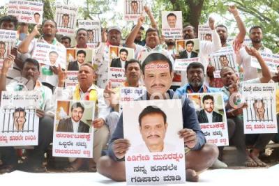 Photo Caption : Members of Bengaluru City Youth Congress protesting against BJP MLA Munirathna for his bad statement on Senior Actor Dr. Rajkumar , in Bengaluru on Thursday 6th March 2025