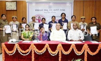 Photo Caption : KSRTC Women Best workers being felicitated during the International Women Day program organised by KSRTC at Shanti Nagar, also seen are Transport Minister Ramalinga Reddy interacting with Padmashree awardee Bheemavva Doddabalappa Shillekyata, KSRTC MD V Anbukumar and Director Dr. Nandini Devi K, in Bengaluru on Saturday 8th March 2025