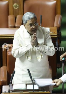 Photo Caption : CM Siddaramaiaha arriving during the Assembly Session at Vidhana Soudha, in Bengaluru on Friday 14th March 2025