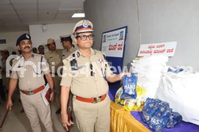 Photo Caption : Police Commissioner B Dayananda inspects the recovered duplicate products during the press conference on Property parade at Police Commissioner office, in Bengaluru on Friday 14th March 2025