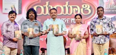 Photo Caption : Writer Banjagere Jayaprakash releasing a book titled "Yayathi" with H Dandappa, Dr. M Manjula and writer Purshottama Das Heggade at Ravindra Kalakshetra, in Bengaluru on Sunday 16th March 2025