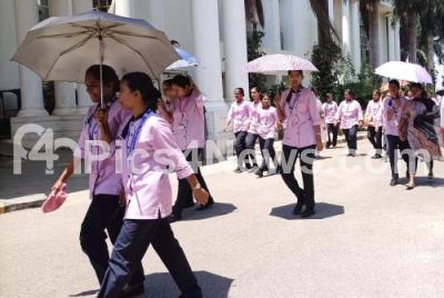 Event Description : Students using umbrellas to protect from the scorching sun rays and heat during the summer at Rajarajeshwari Nagar, in Bengaluru on Thursday 20th March 2025