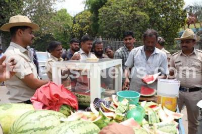 Photo Caption : People buying watermelon to quench their thirst in this scorching heat at Town Hall, in Bengaluru on Saturday 22nd March 2025