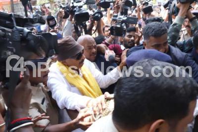 Photo Caption : Kannada Activist Vatal Nagaraj being detained by police during the Kannada Activists called Karnataka bandh, to condemn the alleged assault on a bus conductor and Kannadigas in Belagavi, in Bengaluru on Saturday 22nd March 2025