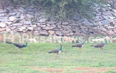 Event Description : Peacocks searching for the water at Ullal lake near Ramasandra Village, Vishveshwaraiah layout, the water level has decreased at Ullal lake and is drying drastically due to summer season, in Bengaluru on Sunday 6th April 2025
