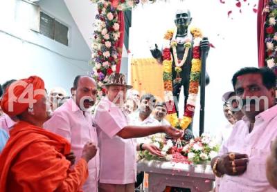Photo Caption : MLA Uday Garudachar unveiling the statue of Sarvagna at Kumbara Sangha , in Bengaluru on Sunday 13th April 2025