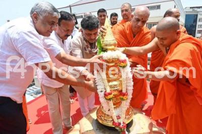 Event Description : Sri Nirmalananda Swamiji of Adichunchangiri Mutt with DCM DK Shivakumar, Former Union Minister DV Sadananda Gowda, MLA K Gopalaiah and others participated in the Kumbhabhishek Mahotsava and inauguration ceremony of Sri Abhaya Anjaneya Swamy, Sri Prasanna Mahaganapathi and Sri Mata Lalithambika temples at the premises of Adichunchanagiri Mutt in Mahalaxmi Layout, in Bengaluru on Tuesday 15th April 2025