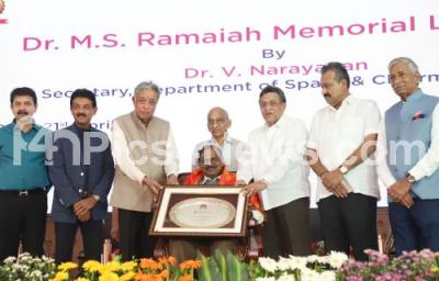 Photo Caption : Dr. V Narayanan, Secretary, Dept. of Space and Chairman ISRO being felicitated during the Dr. MS Ramaiah Memorial Lecture program at MS Ramaiahs College, also seen are Dr. MR Jayaram, Chairman, GEF, Dr. MR Seetharam, Chairman, GEF, MR Janakiram, Vice Chairman, GEF, MR Anandaram, Secretary, GEF, MR Sampangiramaiah and MR Kodandaram, Director, RIT and others , in Bengaluru on Monday 21st April 2025