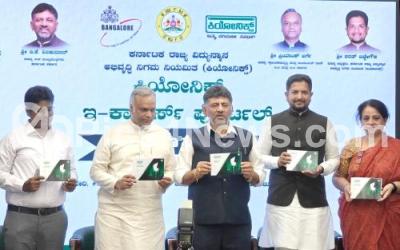 Photo Caption : DCM DK Shivakumar inaugurated the e commerce portal of KEONICS, also seen are Rural Development and IT BT Minister Priyank Kharge, KEONICS President, MLA Sharath Bachegowda, IT BT Secretary Ekroop Kaur and others, in Bengaluru on Monday 21st April 2025