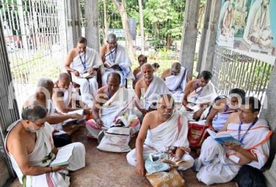 Priests performing pooja on the occasion of Sri Shanakaracharya Jayanti Mahotsava at Sringeri Shankara mutt, Shankarapura, in Bengaluru on Monday 28th April 2025