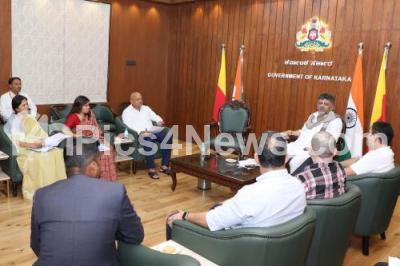 Photo Caption : IIFA representatives met DCM DK Shivakumar at a meeting to discuss the organization of the festival and the International Film Awards ceremony by the International Indian Film Academy (IIFA), also seen are Information and Public Relations Commissioner Hemant Nimbalkar, DCM Secretary Rajendra Cholan, IAS officers Kaveri and Salma Fahim and others at Vidhana Soudha, in Bengaluru on Friday 2nd May 2025