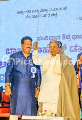 Photo Caption : Chief Minister Siddaramaiah being felicitated during the unveiling of the 14 feet tall bronze statue of Dr. BR Ambedkar at a program organized by the District Administration and Zilla Panchayat, Bengaluru City District, Taluk Administration and Taluk Panchayat, Yelahanka and Social Welfare Department, in Bengaluru on Saturday 3rd May 2025