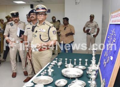 Photo Caption : Police Commissioner B Dayananda inspects the recovered silver and gold ornaments during the press conference on Property parade at Police Commissioner Office, in Bengaluru on Tuesday 13th May 2025