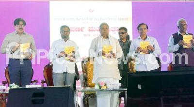 Photo Caption : Chief Minister of Karnataka Siddaramaiah with MLA Basavaraj Rayareddy, MLC Naseer Ahmed and others during the Golden Jubilee celebrations of Karnataka Commercial Taxes Service (Officers) Association at Palace Grounds, in Bengaluru on Saturday 17th May 2025