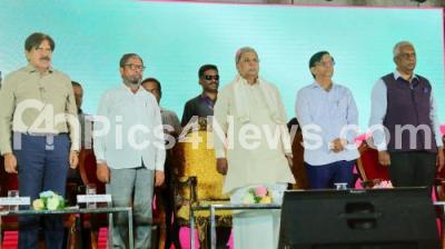 Photo Caption : Chief Minister of Karnataka Siddaramaiah with MLA Basavaraj Rayareddy, MLC Naseer Ahmed and others during the Golden Jubilee celebrations of Karnataka Commercial Taxes Service (Officers) Association at Palace Grounds, in Bengaluru on Saturday 17th May 2025