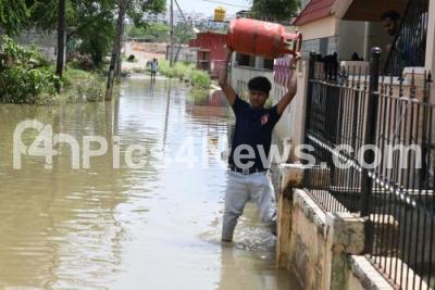 Event Description : Sai Layout is submerged in rain water after last night heavy rainfall, in Bengaluru on Sunday 18th May 2025