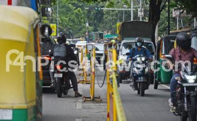 Photo Caption : Traffic jam at Museum road, as the road has been turned into a 2 way road due to repair work on Residency Road, in Bengaluru on Tuesday 20th May 2025