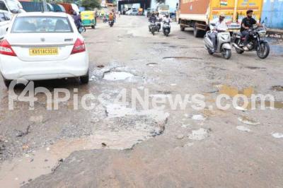 Potholes menace at Laggere, RR Nagar Assembly constituency due to recent rain and causing problems for the motorists, in Bengaluru on Wednesday 21st May 2025