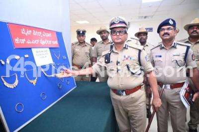 Photo Caption : Police Commissioner B Dayananda inspects the recovered jewels during the press conference on property parade at Police Commissioner Office, in Bengaluru on Wednesday 28th May 2025