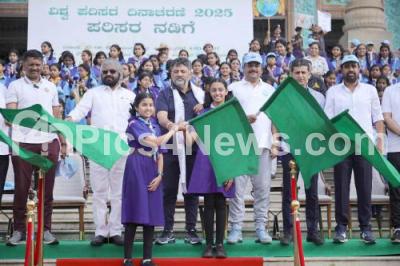 Event Description : DCM DK Shivakumar with Forest Minister Eshwar Khandre, Karnataka Pollution Control Board Chairman PM Narendra Swamy and others participated during the marathon organized by the Karnataka Pollution Control Board in front of the Vidhana Soudha as part of the Environment Day celebrations, in Bengaluru on Tuesday 17th June 2025