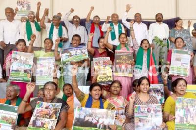 Event Description : Farmer leaders protest against the land acquisition at Devanahalli and attack on few farmers, in Bengaluru on Friday 27th June 2025