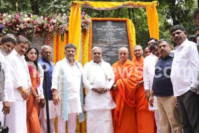 Photo Caption : Sri Nirmalananda Swamiji, Chief Minister Siddaramaiah, DCM DK Shivakumar and others during the laying foundation stone for the Kempegowda Bhavan at Babu Jagjivan Ram Bhavan, in Bengaluru on Friday 27th June 2025